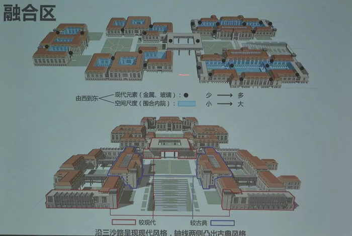 “仿建的这些标志性建筑并不是仿建了外面里面的风格,里面的设计风格我们也进行了还原,这样做的目的就是确保海大文化的传承,风格的统一。”江立敏说。记者梳理各个团队提交的设计方案发现,绝大多数方案的设计都是在一定程度上沿袭了海大鱼山校区和崂山校区的校园建筑风格的特点。