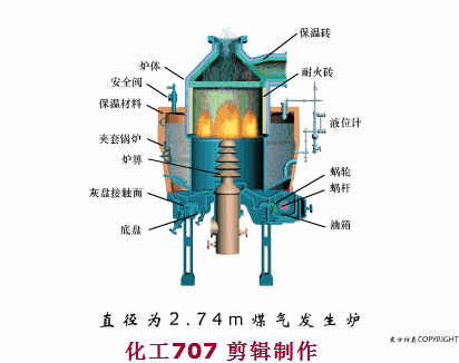 造气工段中煤气发生炉是制造半水煤气的主要设备,它属于非催化固定床反应器。