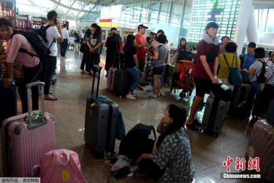 资料图:当地时间11月28日,大量游客滞留在巴厘岛努拉雷国际机场。