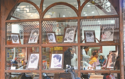 门口的橱窗里展示曾经的流行发型图。