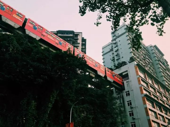 轻轨二号线李子坝站:穿楼而过的轻轨是重庆“网红”地标建筑中的常青藤,很多人好奇重庆轻轨李子坝站是先有楼房还是先有轻轨?可以告诉你的是站点与楼栋是同时设计、同时修建,是不是有些意想不到的感觉呢?