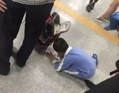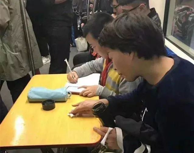 还有等地铁也要趴在地上写作业