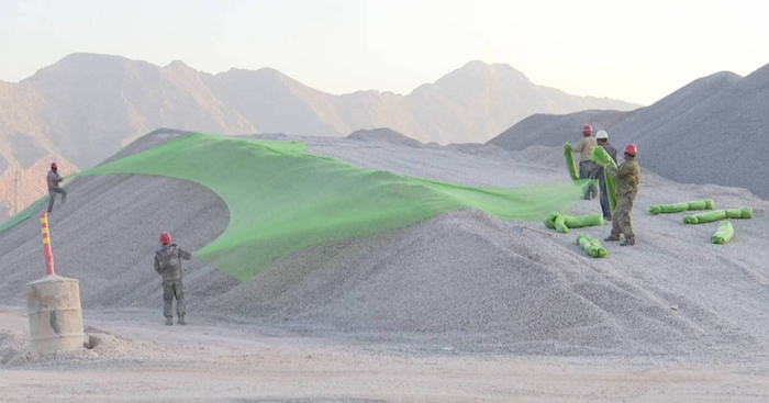 11月29日,市国土资源局各部门相关负责人来到西夏区套门沟矿区内,对企业整改情况进行现场落实。记者在贺兰山开山石料建材有限公司以及莲花山建材有限公司均看到,工人正在对裸露或者覆盖不完全的砂石堆进行防尘网覆盖,同时对矿区内道路实施洒水降尘作业。