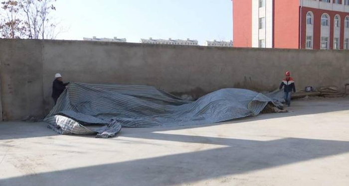 另外,在灵武火车站西侧的空地上,记者看到有工人正在使用防尘网对这里进行覆盖,并安排洒水车前来洒水。