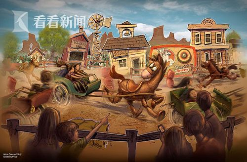 而专为上海打造的胡迪牛仔嘉年华区域有11匹“公马”和11匹“母马”拉着游客驰骋,时而加速、时而转弯,十分刺激。游客仿佛进入美国西部老镇之中。