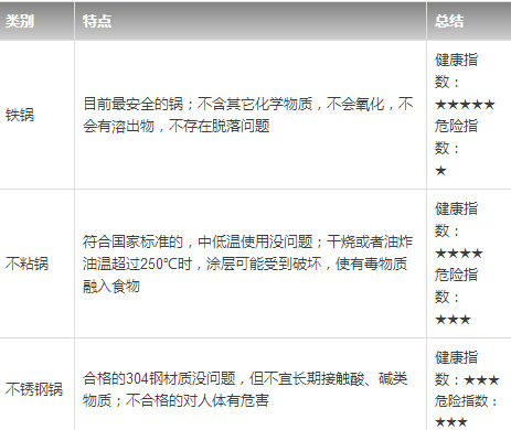 铁锅>不粘锅>不锈钢锅>砂锅>陶瓷锅>压力锅>铝锅
