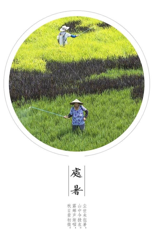 处暑:“三伏适已过,骄阳化为霖。”每年8月23日或24日迎“处暑”。处是终止、躲藏的意思。处暑表示炎热的暑天就要结束。