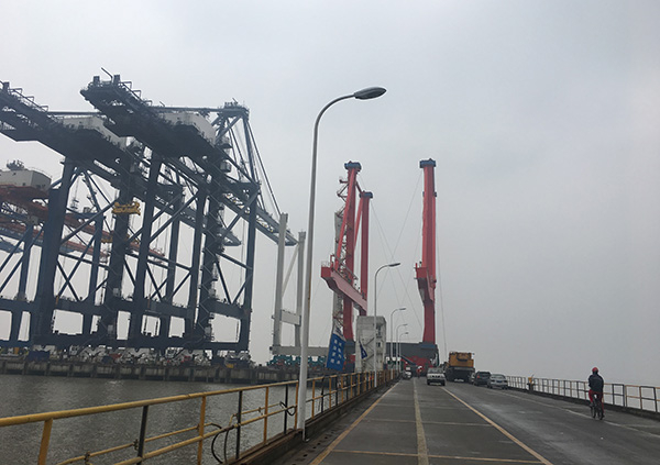 空无一人的洋山港四期。本文图片均由 澎湃新闻记者 张赛男 摄