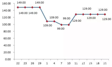 例如,某女装在11月7日之前价格为152元,而在10日价格上调至288元,并于11日又降至136元,涉嫌通过虚假折扣诱导消费: