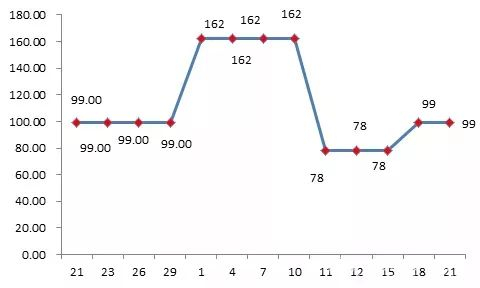 某巧克力豆,“双11”前先大幅提价,由每盒99元提高到162元,“双11”期间减低到78元每盒,给消费者折扣力度大的错觉: