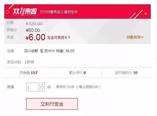 所谓预售,即商家使用支付定金(订金)的方式,让消费者提前购买,“双11”当天支付尾款,“双11”后发货。