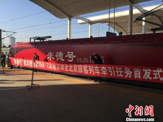 图为“朱德号”机车担当Z158/7次哈尔滨至北京旅客列车牵引任务首发式。 史轶夫 摄