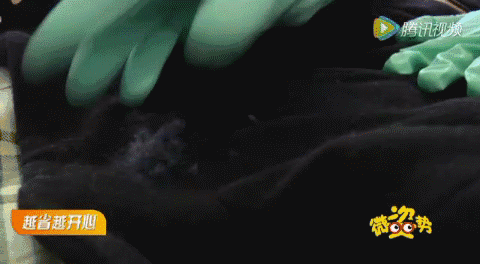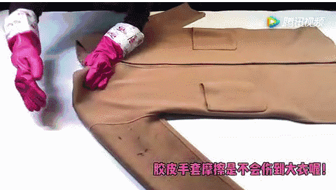 步骤二 :用掌心摩擦粘毛的地方,橡胶手套的纹理是不会损害大衣的;