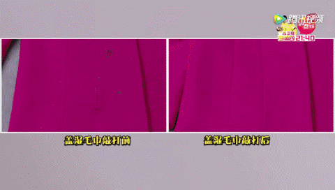 持续数十下后掀开毛巾,令人惊奇的一幕出现了:毛絮,灰尘全粘在毛巾上,大衣变得干净如新!