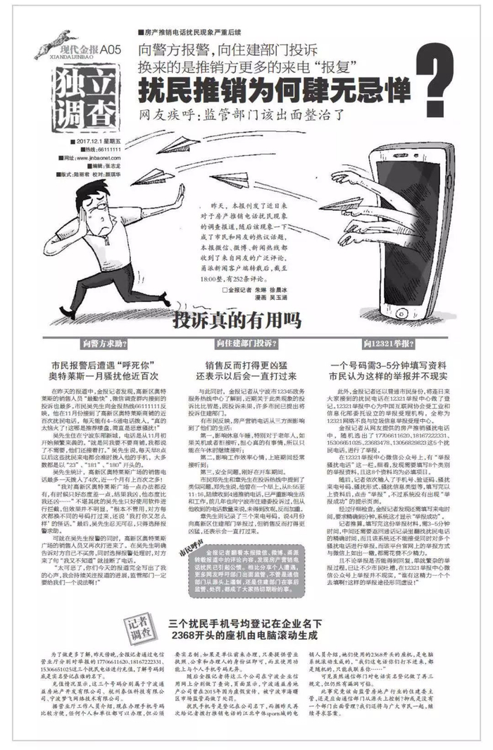 从11月22日起,本报开始持续关注房产推销电话扰民现象,截至今天,已刊发两篇系列报道。
