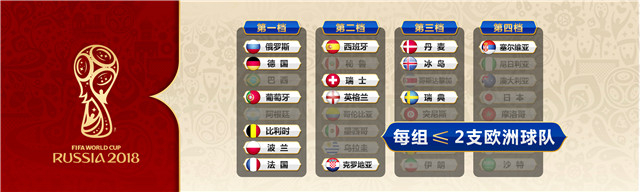 首先,32强球队按照排名被分为4档,俄罗斯作为东道主,自动归入第一档种子队。装有每档8支球队的4个玻璃缸将被放在舞台一侧,另一侧的玻璃缸则代表A到H八个组别。