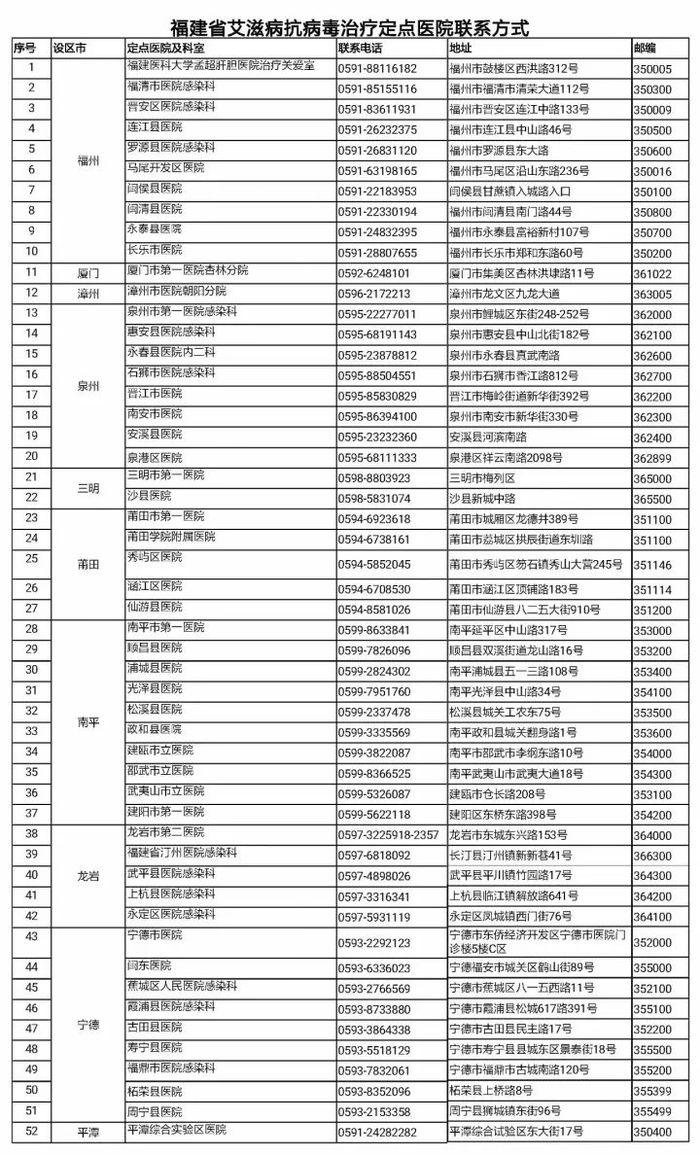 我省艾滋病抗病毒治疗定点医院表:
