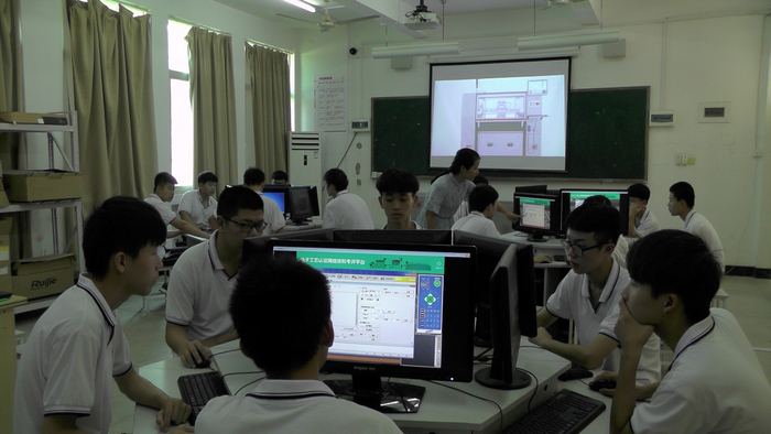 “在课前,我们引入三维组装动画,学生可以在手机上下载相关资源,跟随动画的演示一步步熟悉自动贴片机的组装,初步了解这台机器。”董银花告诉记者,动画比起古板的课本,更为生动形象,更能激发学生的兴趣。