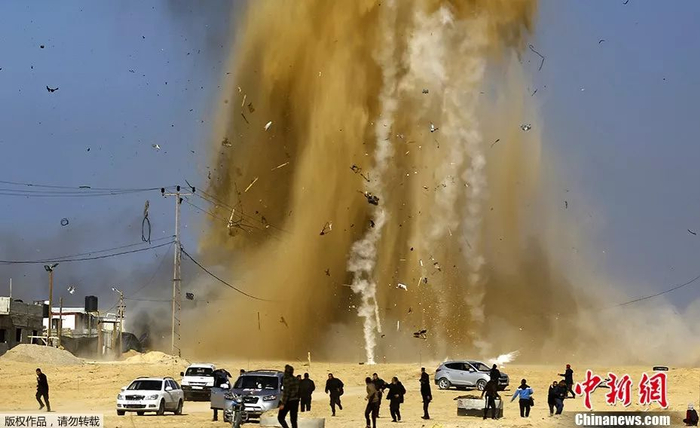 当地时间2017年2月6日,加沙地带,以色列对哈马斯据点实施空袭,巴勒斯坦人逃离现场。