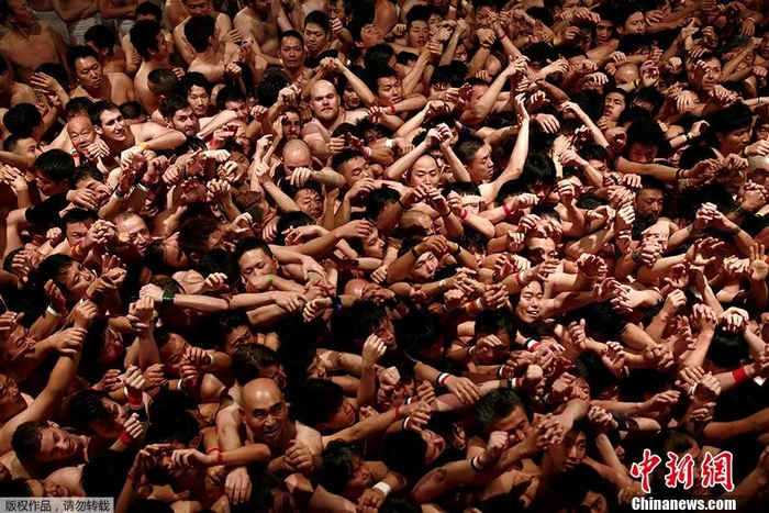 当地时间2017年2月18日,日本冈山,日本庆祝传统节日“裸体祭”,男子裸身肉搏抢神木画面惊呆众人。据悉,这是日本的传统节日,据说能抢到神木的一年都会健健康康的、富足成功。