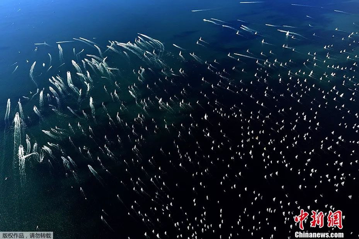 当地时间2017年10月8日,意大利特里亚斯特湾,第49届巴克拉纳帆船大赛举行,大约有2072艘船参加。