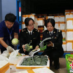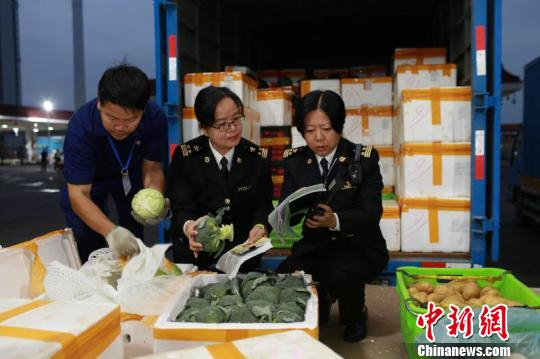 海关工作人员正在验放供澳门鲜活农产品