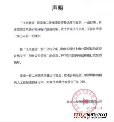 江南嘉捷也在上证e互动平台上证明泰康人寿并非突击入股。