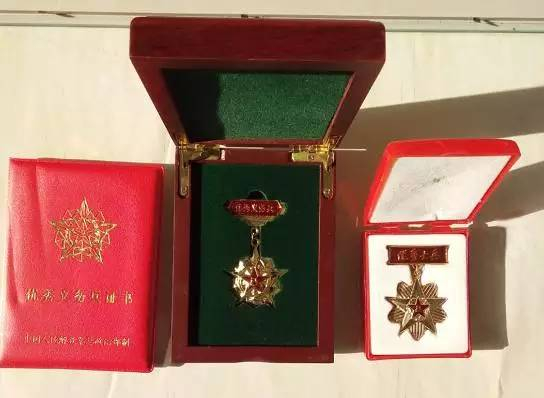 马俊东获得的优秀义务兵和优秀士兵的奖章。