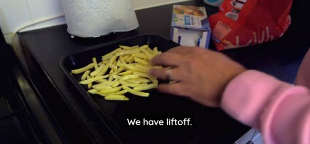 第一天,要解决晚餐,但因为家里只剩下包装的炸鱼薯条,只能将就吃点了。于是,这个爹试着开炉。。。