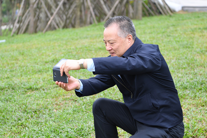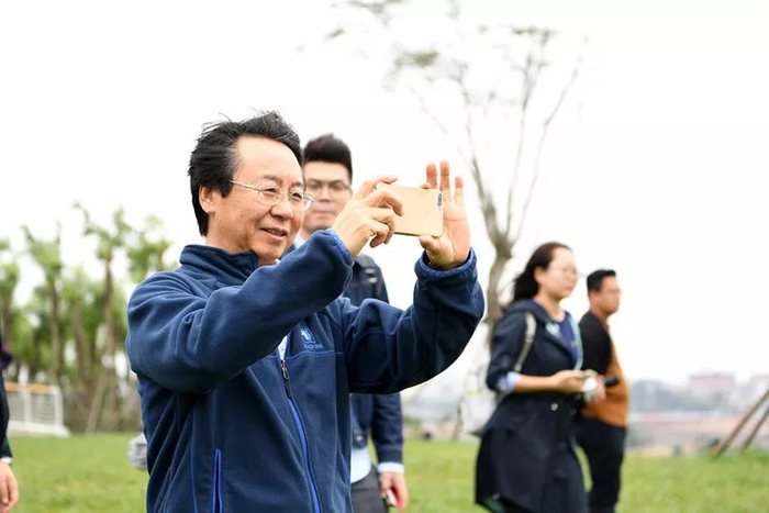 前来参加中国城镇水务发展国际研讨会的专家侯立安院士在拍摄凤翔湿地公园美景。石中华 摄