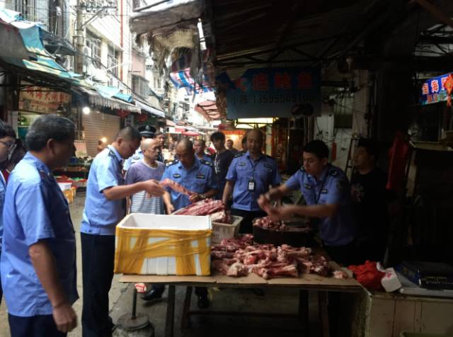 10月17日,思明区市场监督管理局鹭江市场监督管理所,根据匿名举报的疑似销售私宰肉摊贩,派出执法人员实地踩点和暗访。