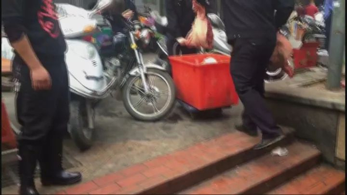 突击查获岛内多处私宰肉白条鸡