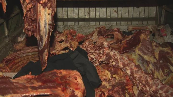当场从车上查获私宰牛羊肉