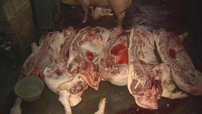 并且,这些生猪私宰场所一般条件简陋,有的私宰点卖注水肉,甚至夹杂病死猪肉售卖,风险隐患极大。