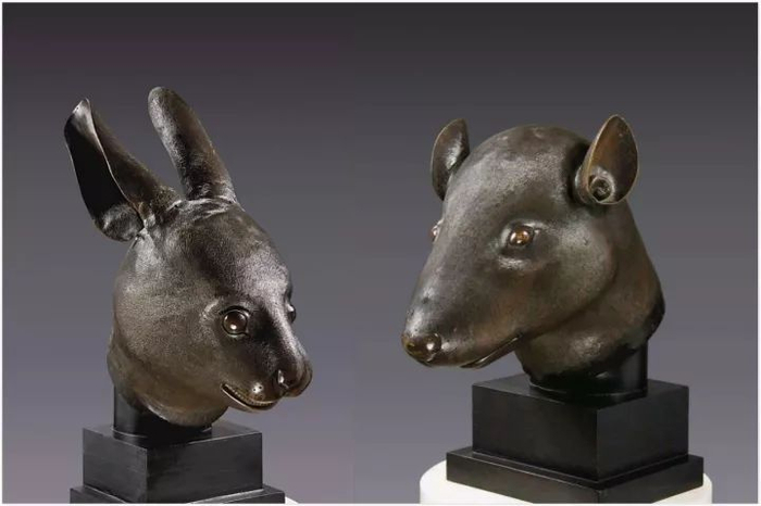 ▲圆明园12生肖兽首铜像中的兔首和鼠首