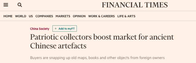 于是,英国《金融时报》网站报道:“中国收藏家正在世界各地追寻中国文物。”