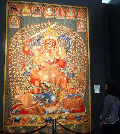 ▲上海著名艺术品收藏家刘益谦出价4500万美元,拍得明永乐御制红阎摩敌刺绣唐卡。