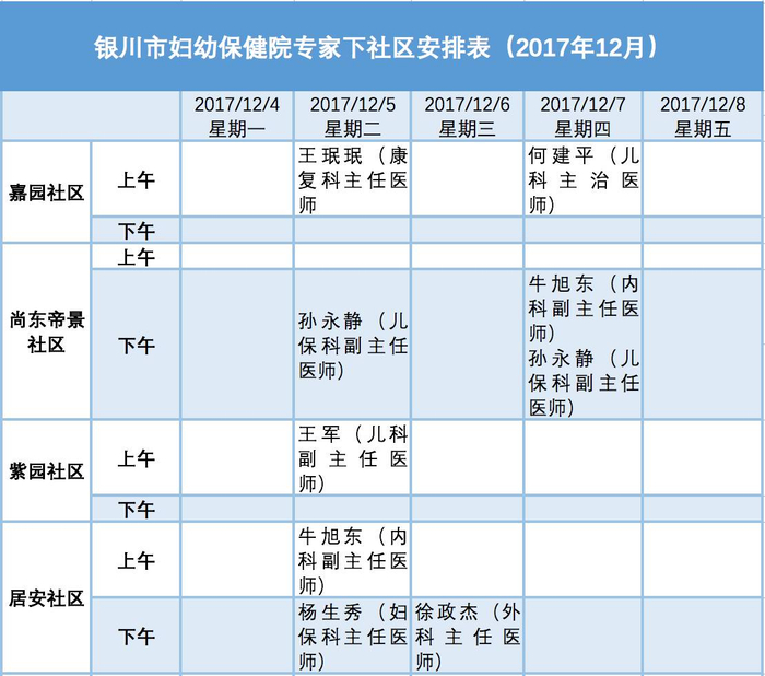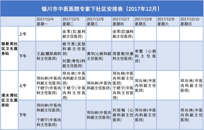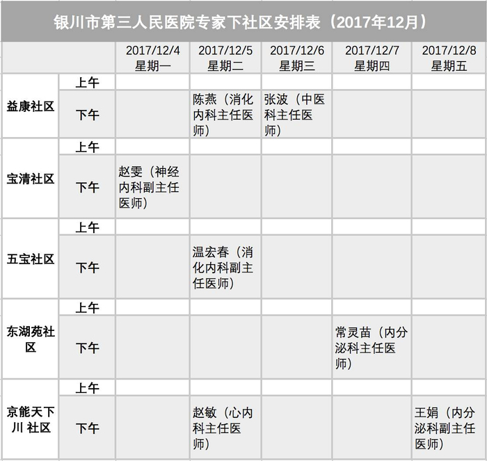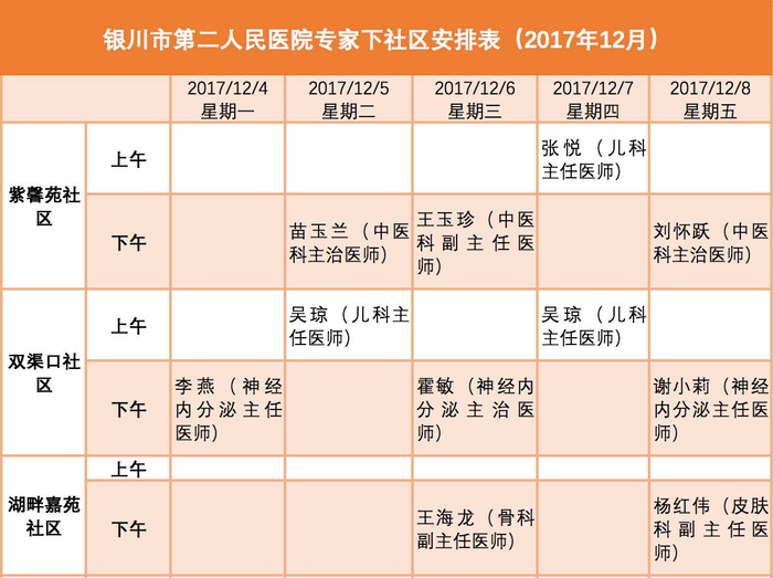 银川发布与银川市卫计委合作开设“医疗专家下社区”栏目,我们在每周末发布下一周各医院专家去社区坐诊的具体安排表。