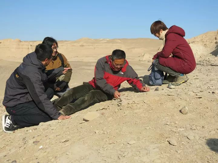 科学家通过沉积学和埋藏学观察,发现哈密翼龙蛋和骨骼化石主要产自于砂岩中。骨骼化石虽然分散保存,但每一块骨骼几乎都是完整的。