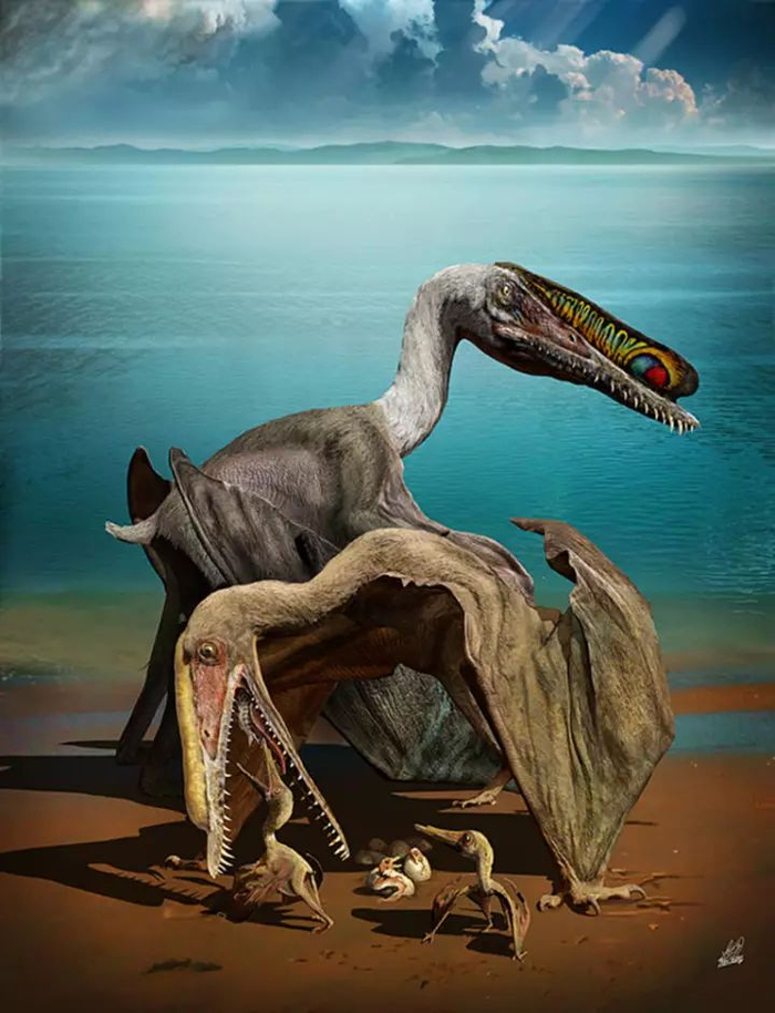 翼龙起源于约2.2亿年前的晚三叠世,绝灭于6500万年前的白垩纪末期。当恐龙占据着陆地时,翼龙却控制着天空。