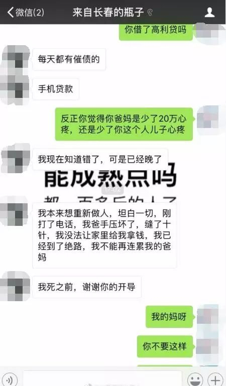 网友@用户hanjie红枫叶:我觉得好像是真的,但愿这个孩子不要做傻事,二十万就结束自己生命太不值,跟父母说实话,共同商量解决,不要把自己的青春轻易放弃。