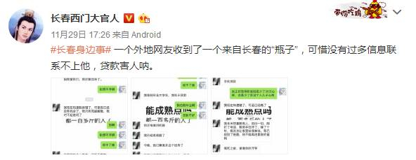 11月29日下午5点半左右,网友@长春西门大官人发布信息称: