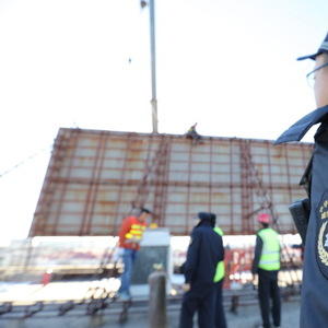 位于大兴区的“旧宫商厦”已有20年历史,住在旧宫地区的不少市民指路的时候都会以它作为标志点。12月1日,大兴区城管执法人员拆除旧宫商厦的三块大型违规广告牌。据介绍,这三块牌匾平均高度达6米左右,长度约35米,一块牌匾的总面积达900平方米,由于体积过大存在安全隐患。正在现场指挥施工的城管队员孔唯一告诉记者:“由于牌匾太大了,所以我们只能先把它们切割,再逐块运送到地面,工作难度较大。”