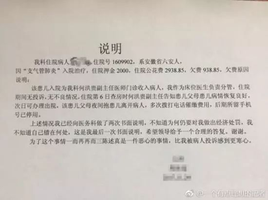 近日,一则“病人欠费医生扣款明细表”在网络热传。