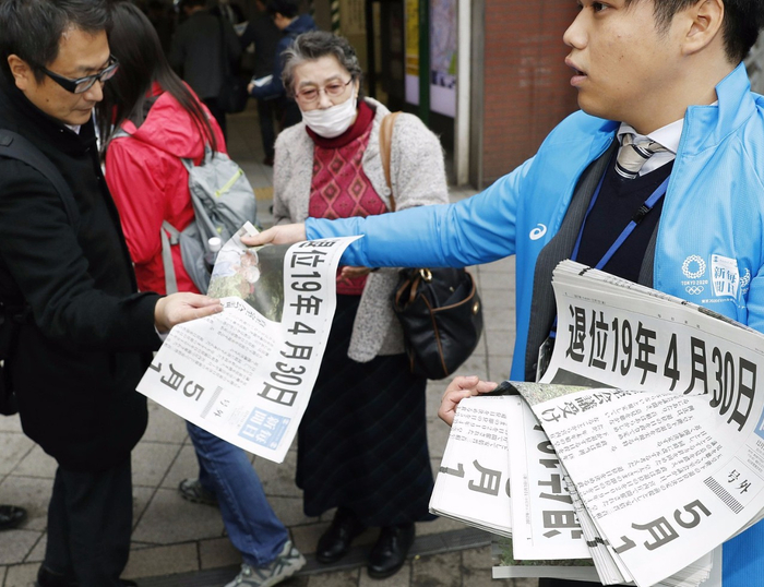 ▲当地时间2017年12月1日,日本东京,民众关注明仁天皇退位时间确定的新闻报道。(来源:视觉中国)