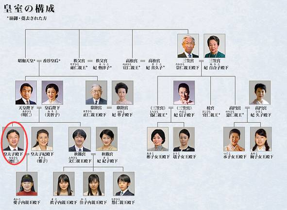 根据日本《皇室典范》,只有男性皇室成员才能继承皇位。明仁天皇退位后,将由其长子、皇太子德仁继位。