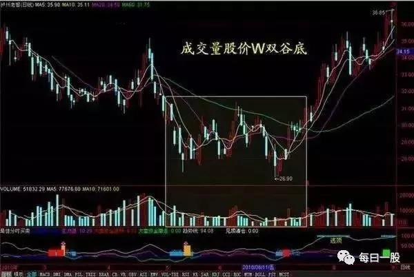 3、成交量股价W双谷底