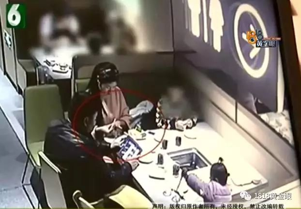 曹女士的弟媳突然往男孩这边坐近一点,可以看到那个放了戒指的塑料袋,还是紧紧捏在她左手上,她不时用右手拿筷子夹小菜吃,和对面女孩交流时,还晃了晃左手上的塑料袋,然后又和拿平板电脑点菜的丈夫交流。过了一分钟左右,曹女士拿火锅调料回来了,但是并没有马上坐下,而是站着摆弄调料,刚好挡住了对面弟媳的左手位置,过了十几秒,可以看到曹女士的弟媳用左手拿起吃的往嘴里送。