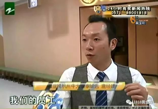海底捞杭州中大银泰城店 唐经理:“然后再承诺,客人提供买戒指的一些依据, 然后我们根据,因为公司是有规定的,就是丢失东西,我们可以承担部分责任, 然后我们给予赔偿现金1500元,就这么回事,然后客人今天把你们给带过来了。”