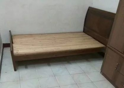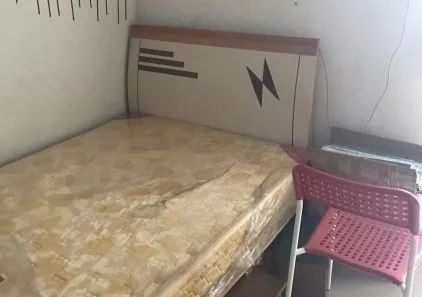 厨房稍好点。房间也还算宽敝,只是墙不怎么干净,柜子和床也有点老旧。床垫明显是二手市场买来应付租客的。